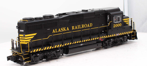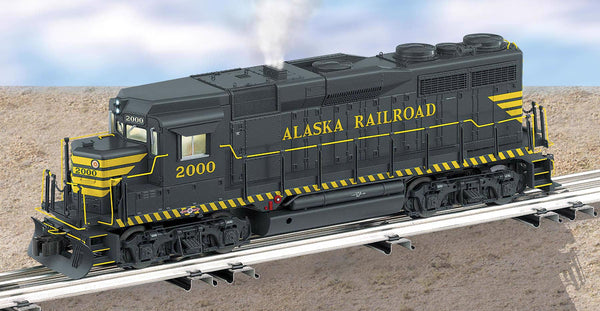 Nearly 1,000 General Motors GP-30 diesels were built in the early 1960s, serving on rails around the country. New for 2004, the TMCC-equipped Lionel GP-30 is available in Alaska Railroad livery. With many separately parts and detailed Blomberg trucks, the scale-sized Lionel GP-30 continues to set the standard for O gauge diesels. . FEATURES:, Scale proportions, Separately applied detail parts, Super-detailed die-cast metal trucks, Authentic paint schemes, Perfectly matched to Lionel Standard O Rolling Stock, TrainMaster Command Control equipped—able to run in Command Control Mode or in Conventional Transformer Control Mode, RailSounds sound system with CrewTalk communication and TowerCom announcements, Odyssey System for speed control with ON/OFF switch, Directional lighting including LED headlights and operating marker lights, Two ElectroCouplers, Dual powerful maintenance-free motors with momentum flywheels, Magne-Traction track gripping system, Traction tires, Fan-driven smoke unit, Die-cast metal trucks, fuel tank and pilots, Metal frame, Separately applied metal details, Lighted number boards, Lighted cab interior, Engineer figures