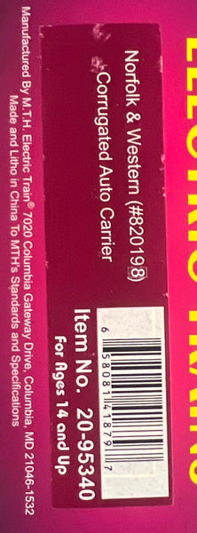 Product Title: MTH Premier 20-95340 Norfolk & Western Premier Corrugated Auto Carrier CTTX With O SCALE