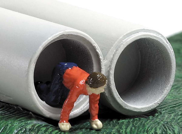 Watch the children swing back and forth all day long. Two boys play “hide-and-go-seek” in the pipes. The compact size of the accessory offers an easy way to add animation to any size layout.