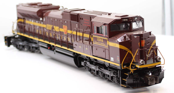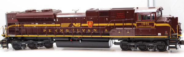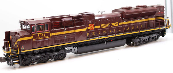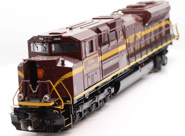 NORFOLK SOUTHERN HERITAGE LINEThe last diesel entry in the NS Heritage line - the five important railroads that were ultimately absorbed into modern day Norfolk Southern - is the Pennsylvania SD70ACe #1846 dressed in classic tuscan, complete with matching caboose and PRR freight cars.Each collector’s locomotive and rolling stock pieces in this Heritage line is beautifully and uniquely decorated to pay tribute to the Norfolk Southern Railway and the fallen flag railroads it was built from.. LEGACY Control System equipped – able to run in Legacy Control mode, in TrainMaster Command Control mode, or in Conventional mode with a standard transformer, Odyssey II Speed Control with On/Off switch, LEGACY RailSounds sound system featuring: -CrewTalk dialog and TowerCom announcements, each with different scenarios depending on whether the locomotive is in motion or stopped-Six official railroad speeds with CrewTalk dialog -Eight diesel RPM levels-LEGACY "Real-Time Quilling Horn" control with instant quilling and correctly timed warning signals-Single hit or continuous mechanical bell sounds, Front and rear ElectroCouplers, Dual powerful maintenance-free motors with momentum flywheels , Refined Conventional Transformer Control Mode with lower starting speeds, Operating marker lights , Traction tires , Fan-driven smoke system , Adjustable smoke output, Directional lighting including LED headlights, Oscillating ditch lights, Illuminated number boards , Illuminated cab interior, Ground lights, Die-cast metal trucks, pilot, and fuel tank, Metal frame, Separately applied metal details, Engineer and fireman figures