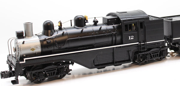 Locomotive #12 of the Elk River Coal & Lumber Company chugs through the West Virginia wilderness with a log train in tow. The rails ahead descend into a stream. Is the #12 headed for imminent disaster? Not at all. The locomotive fords the stream as though it were not even there. The #12 is a Shay, a geared locomotive that is the "off-road vehicle" of railroading. The Shay was born out of necessity and bears the name of its ingenious inventor. ----In 1873, a Civil War veteran named Ephraim Shay operated a sawmill in northern Michigan. He faced a problem that then plagued most loggers. Transportation accounted for almost three-quarters of the total cost of his lumber operation, drastically affecting his profits. Once the timber stands close to easy water transport were exhausted, lumberjacks had to venture further into more rugged, often higher country. They had to drag logs out via horse-drawn sleighs and logging wheels, which often got bogged down or broken in the rough wilderness. ----Shay first attempted to solve his problem by building a tramway, a set of crude wooden rails that horse-drawn log carts with flanged wheels rode upon. Tramways had become common in late nineteenth century logging operations. Shays tramway initially cut his transportation costs. However, the log carts frequently overtook their teams on a downgrade, often killing the horses. Shay decided to turn his tramway into a real railway and looked toward the iron horse that was linking America for inspiration. ----From the outset, conventional rod locomotives proved ill suited for deep woods logging. They slipped and stalled on the extreme mountain grades. They derailed on tight curves and any bump in the rail. Shay also found that a conventional locomotive tore up his track, even though it was lighter than his heavy log cars. This mishap inspired Shay to invent the geared locomotive. As other loggers took notice, Shay began to receive orders. He looked to the production capabilities of the Lima Machine Works, which later became the Lima Locomotive Works, Inc. Even as they gained fame with their super power giants, Lima would build 2770 Shays, continually improving the design. ----The Shay locomotive is based on four-wheel articulated trucks, similar to those on a freight car, that are connected to each other via gears and a flexible driveshaft. Three vertically mounted rods transfer power to the shaft from the boiler. Lack of large counterbalanced drivers, and the "hammer blow" of rod-motion that can damage track, meant that a Shay could travel on much lighter rail than a rod locomotive of the same size. Since all of the wheels were powered, the entire weight of the locomotive contributed to the tractive effort. The flexible driveshaft kept all of the wheels on the crudest temporary railroads despite rails full of kinks and the lack of a graded, ballasted roadbed. The articulated trucks ensured that the Shay could handle the tightest curves without losing its valuable load. ----With efficient transportation becoming ever more important to logging and mining operations in the 20th century, Shay locomotives remained a staple for loggers and miners until the 1960s. The Lionel Shay locomotives represent historic logging railroads of the east and west coasts. ----The Elk River Coal & Lumber Company operated in the mountains of Clay County, West Virginia from 1903 until the late 1950s. Headquartered in Washington State, the Weyerhaeuser Timber Company remains one of the nations largest harvesters of forest products. Both TrainMaster Command Control-equipped locomotives feature realistic, operating rods, gear-drive and rotating flexible drive shaft. Each model includes dual ElectroCouplers for prototypically pulling or pushing a log train. The special RailSounds sound system includes the authentic chuffs of the Shay, one of the most unique success stories in the history of railroading. . Body, Die-cast metal tender body, Control, TrainMaster® Command Control equipped—able to run in Command Control Mode or in Conventional Transformer Control Mode, Couplers, ElectroCoupler™ on front of locomotive, ElectroCoupler™ on rear of locomotive, Frame, Die-cast metal locomotive frame, Lighting, Operating headlight, Firebox glow, Authentically detailed and illuminated cab interior, Directional back-up light on rear of tender, Miscellaneous, Fully functional Shay drive system, Fan-driven smoke unit, Separately applied metal details, Accurate, separately applied builders plates, Engineer and fireman figures, Motor, Powerful maintenance-free motor with momentum flywheel, Sounds, RailSounds™ sound system with CrewTalk™ communication, TowerCom™ announcement and DynaChuff™ synchronized chuffing , Traction, Four traction tires, Trucks, Die-cast metal tender trucks
