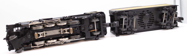 . Locomotive Features, User selected operational modes: Conventional AC transformer control mode or LionChief™ wireless remote control with AC or DC power, ElectroCoupler on rear of tender controlled by the LionChief remote only, Operating headlight, Synchronized fan-driven smoke , On/off switches for sound and smoke, RailSounds RC sound system with steam chuffing and background sounds, whistle, bell, and user-activated announcements, Adjustable volume (controlled by remote only), Constant speed control to maintain a steady speed at a crawl or full speed and everything in between regardless of track conditions or load, Flickering firebox, Chuffing sounds in sync with speed of locomotive, Powerful maintenance-free motor, Die-cast metal locomotive body, frame, and trucks, Die-cast metal tender body and trucks, Metal frame on tender, Engineer and fireman figures, Traction tires, Remote Features, The "throttle" rotates to increase and decrease speed in both forward and reverse, The red light at the top of the remote is a speed indicator; steady when in neutral and blinking faster as it accelerates, Long range control, up to 60 feet, Buttons for whistle sound, bell, special announcements, and ElectroCoupler activation, Multiple frequencies available, so multiple engines can run in the same layout at the same time, LionChief locomotives can run on any Legacy , TMCC, or conventional transformer layout with 18 volts of power supplied to the track, Requires three AAA alkaline batteries (not included). Locomotive Features- User selected operational modes: Conventional AC transformer control mode or LionChief™ wireless remote control with AC or DC power