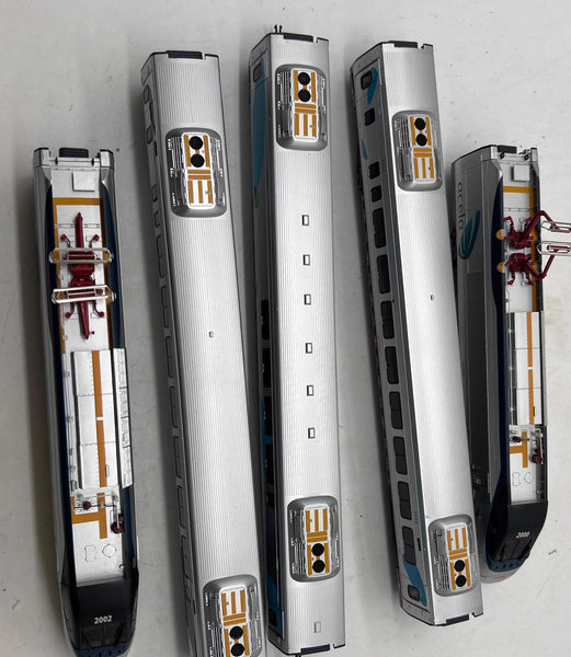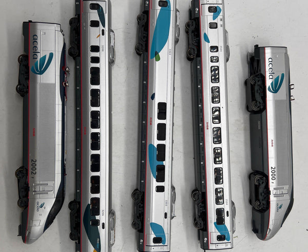 • Couplers: The Acela uses a unique drawbar system rather than standard knuckle couplers to closely connect the cars, which can be tedious to assemble.