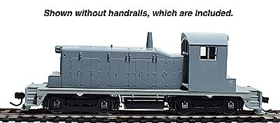 From the late 1930s to the present day, the SW-1 has a proven track record as one of the most successful switches ever built. Their small size makes them ideal for all types of heavy industries that require a reliable, in-plant loco to keep rail cars moving.Both front and rear trucks are powered and a heavy diecast frame (model weighs 11 ounces) insures plenty of pulling power. A skew-wound, five-pole can motor with dual flywheels and all-wheel electrical pick-up insures smooth operation at any speed. Each is painted and lettered, with a basic cab interior, window "glass," working headlight and a complete set of add-on handrails.