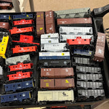 Take a chance! What will you get? Each bag has a random assortment of 3 to 4 cars from the lot of cars pictured. This includes wood sided reefers, boxcars, stock cars, cabooses, tank cars, and more. You may get 3 cars or you could get lucky and get 4!