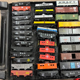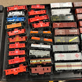 Take a chance! What will you get? Each bag has a random assortment of 3 to 4 cars from the lot of cars pictured. This includes wood sided reefers, boxcars, stock cars, cabooses, tank cars, and more. In most cases, only one caboose possible per pack (but you may receive duplicates of other cars) You may get 3 cars or you could get lucky and get 4!
