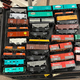 Take a chance! What will you get? Each bag has a random assortment of 3 to 4 cars from the lot of cars pictured. This includes wood sided reefers, boxcars, stock cars, cabooses, tank cars, and more. Only one caboose possible per pack (but you may receive duplicates of other cars) You may get 3 cars or you could get lucky and get 4!