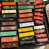 Take a chance! What will you get? Each bag has a random assortment of 6 cars from the lot of cars pictured. This includes wood sided reefers, boxcars, stock cars, cabooses, tank cars, and more.