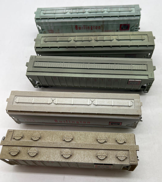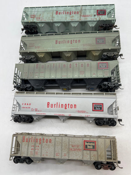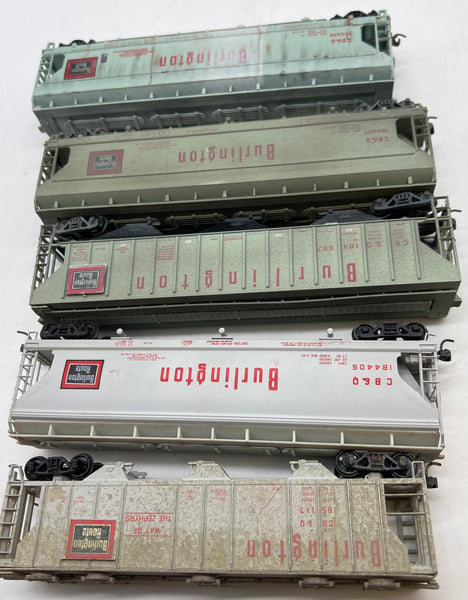 Product Title: HO Scale HO2505 Set of 5 Burlington Hoppers Assorted Some Weathered As Is Kadee Couplers