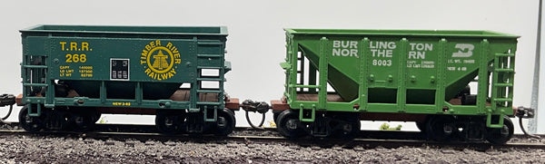Assembled Roundhouse Ore Car 3 Pack set.  BN8003, TRR268, C&O3423.  Kaydee couplers. C&O car has an ore load.