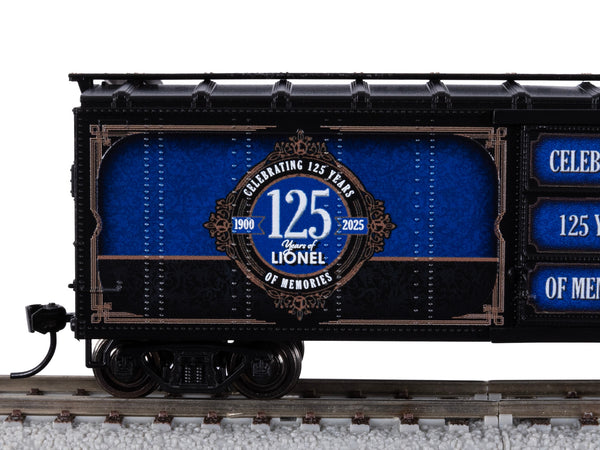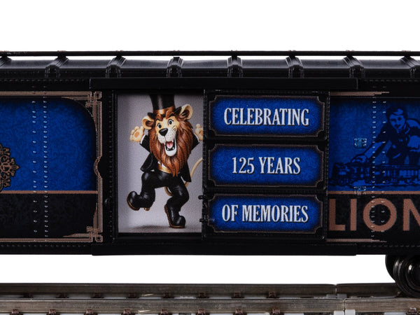 No matter what scale you enjoy, celebrate 125 years of your favorite trains with this commemorative boxcar. FEATURES:- Metal wheels