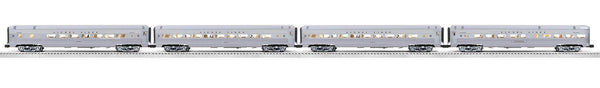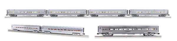 - Passenger Cars Features: Aluminum body construction, die-cast sprung trucks, operating couplers with hidden tabs, opening doors, flicker-free LED interior lighting, complete interiors with figures, and separately applied detail parts.