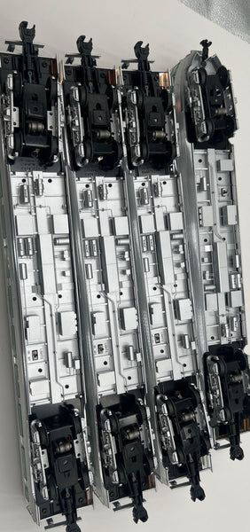 - All-new die-cast metal sprung trucks and operating couplers with hidden uncoupling tab