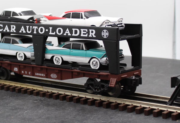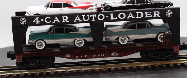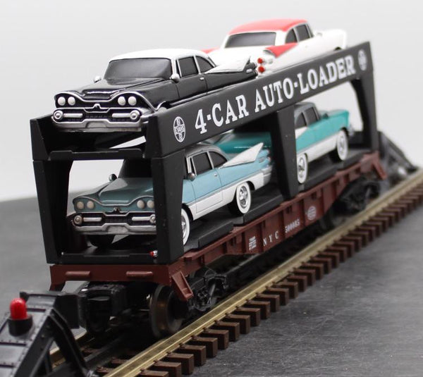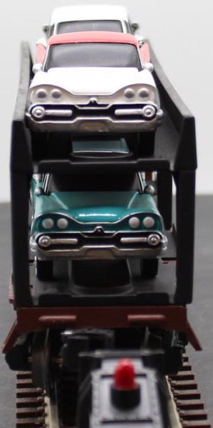 Make your automotive dreams come true with this exciting transport car. Lionel’s famous Evans Auto Loader, decorated in a prototypical paint scheme, is enhanced with the addition of four Route 66 cars painted the way they came off the Detroit production lines in the late 1950’s. For realism and fun, you can’t go wrong with the Evans Auto Loader.