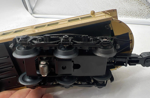 - Die-cast metal trucks and operating couplers