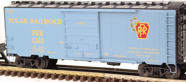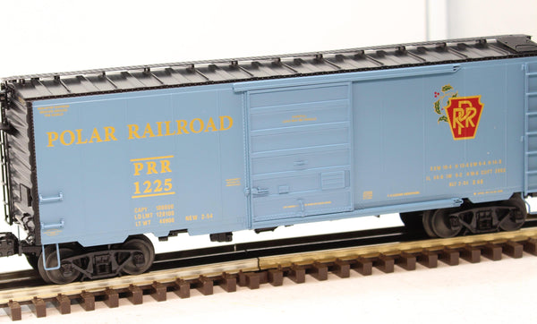 The Polar Railroad offers a handsome mix of holiday decoration and railroad realism, perfect for your scale layout at Christmas time.. Die-cast metal sprung trucks and operating couplers, Hidden uncoupling tabs, Separately applied metal underframe and body details, Opening doors, Journal box trucks, Box loads in interior