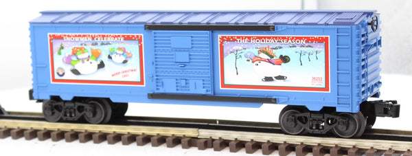Let the frolicking snowmen of the Lionel Christmas Boxcars inspire your holiday season. . FEATURES:, Die-cast metal sprung trucks, Operating couplers , Metal frames, Opening doors