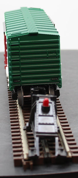 Made in USA of US and imported parts. Die-cast metal sprung trucks and operating couplers, Metal frame, Opening doors.- Die-cast metal sprung trucks and operating couplers