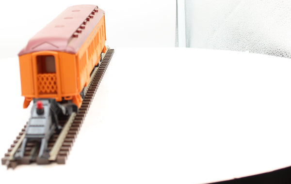 • This car features interior illumination, plastic trucks, plastic knuckle couplers, metal wheels and axles.