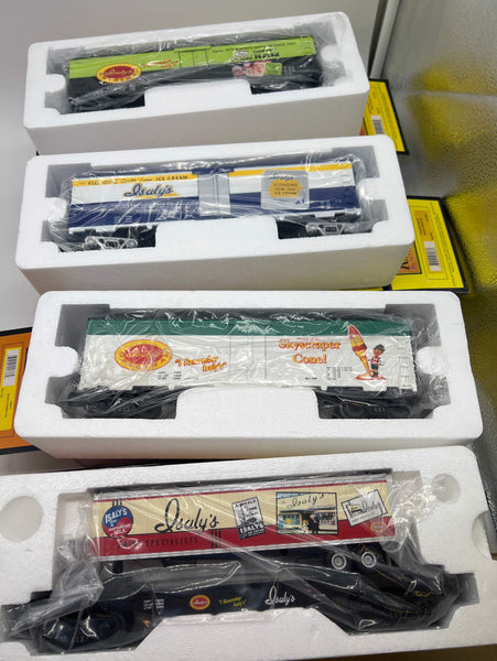 Product Title: MTH 30-76153, 30-7839, 30-7874, 30-7846 Isaly's Pittsburgh Set of 4 Cars-- Isaly's Dairy Specialists; Skyscraper Cones; Klondike; Chip-Chopped Ham O Scale Like New
