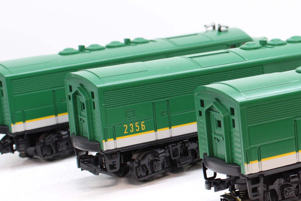 - Colorful Paint Scheme - Die-Cast Metal Chassis - Die-Cast Truck Sides, Pilots and Fuel Tank - Metal Wheels, Axles and Gears - (2) Precision Flywheel Equipped Motors In Powered A Unit - (2) Remotely Controlled Proto-Couplersr (one per A Unit) - Directionally Controlled Headlights - Intricately Detailed ABS Bodies - Locomotive Speed Control - Engineer Cab Figure In Each A Unit - Operating Smoke Unit In Powered A Unit - Proto-Sound 2.0 With The Digital Command System Featuring: Passenger Station Proto- Effects - Proto-Sound 2.0 With The Digital Command System Featuring:- Passenger Station Proto-Effects - Unit Measures:40 1/4" x 2 5/8" x 3 3/4" - Operates On O-31 Curves