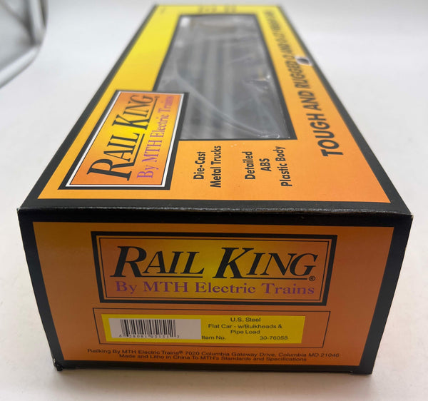 MTH Railking 30-76058 U.S. Steel RailKing Flat Car - w/Bulkheads & Pipe Load O SCALE NEW