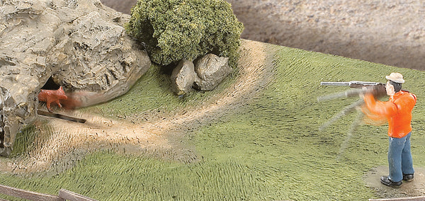 Our sly fox always outsmarts the patient hunter! Watch as the fearless woodsman sets his sights only to be outwitted again as Sly Fox takes refuge inside his cozy den. Creatures of the woodlands have nothing to fear from this bumbling hunter.. FEATURES:, Fox emerges from his den, hunter begins to take aim, and fox retreats just in time