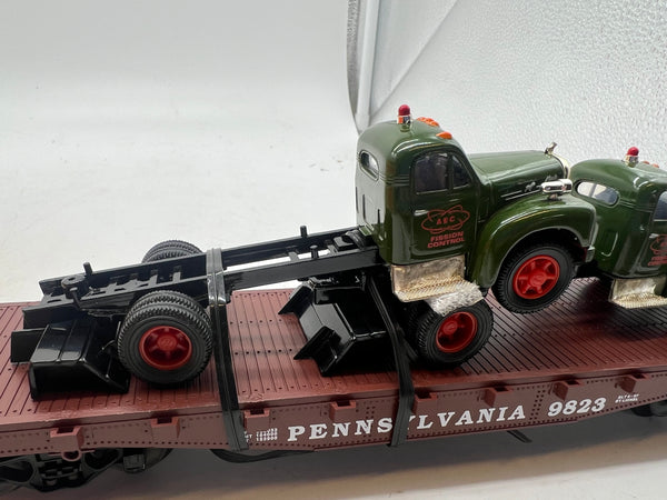 Lionel 6-17518 Pennsylvania PRR Flatcar #9823 with 2 Corgi Mack AEC trucks O SCALE NEW
