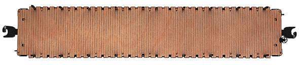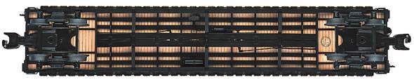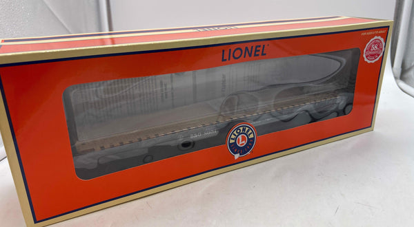PS-4 Flatcar with Die-Cast metal body.. ADDITIONAL FEATURES:, Hidden uncoupling tab, Real wood deck, Die-cast metal body, Twenty removable die-cast metal stakes, Two removable metal chains, Metal underframe details, STANDARD O ROLLING STOCK FEATURES:, Scale proportions, Separately applied detail parts, Die-cast metal sprung trucks and operating couplers, Authentic paint schemes, Perfectly matched to Lionel Standard O locomotives