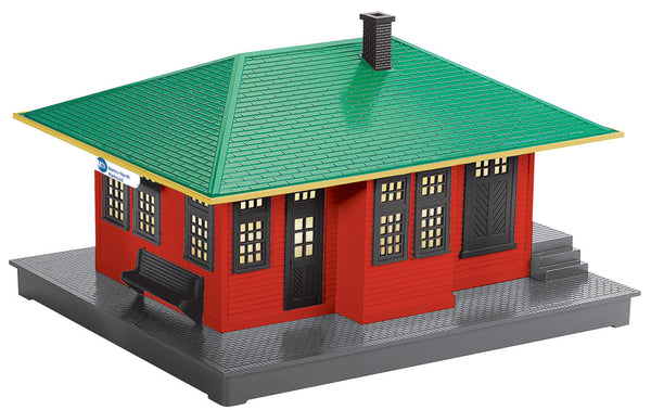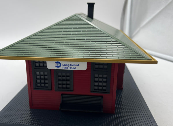 Dressed in new colors, this classic lighted passenger station is perfect for any O or O-27 gauge layout.. Features:, Lighted interior, LIRR sign on roof overhang