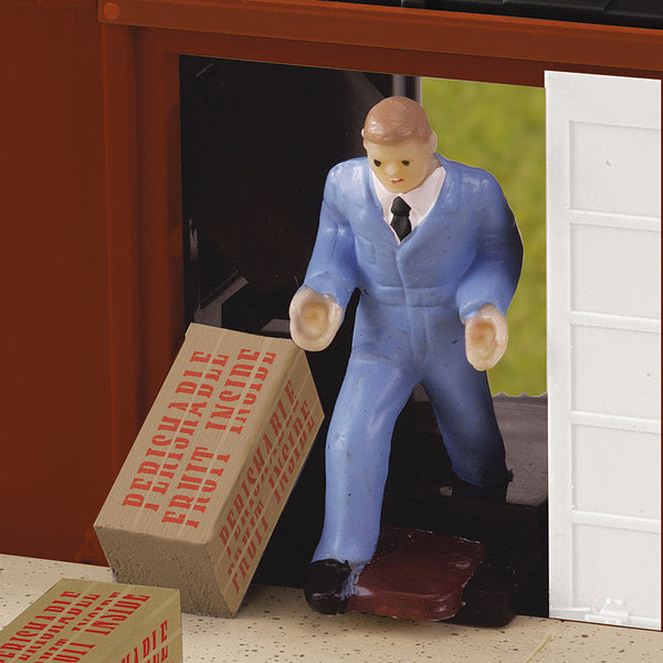 None. Features:, Fully Sprung Die Cast Trucks, Operating Die Cast Couplers, Opening Doors, Fruit Crates Included, Unloading Figure, Operates with Any UCS Track or 6-21438 Remote Controller