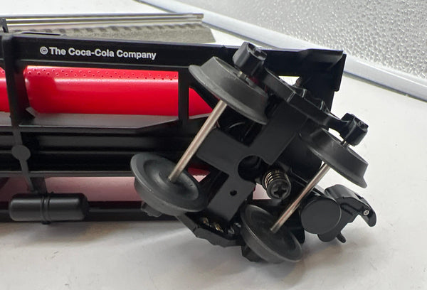COCA-COLA®Explore the refreshing world of Coke with three exciting new cars. Each colorful car is branded with authentic designs authorized by the Coca-Cola Company. It’s the Real Thing!. Die-cast metal sprung trucks and operating couplers, Metal handrails, platform, and ladders