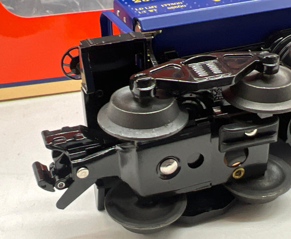 Unload coal at the touch of a button with one of our newly decorated dump cars. With metal framed and ends, these classic twin dump and single dump cars are made to last.. FEATURES:, Die-cast metal trucks and operating couplers, Metal frame and ends, Metal dumping unit, Remote Control Track section required