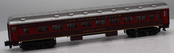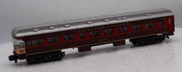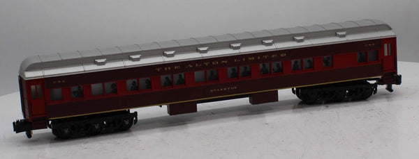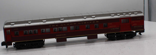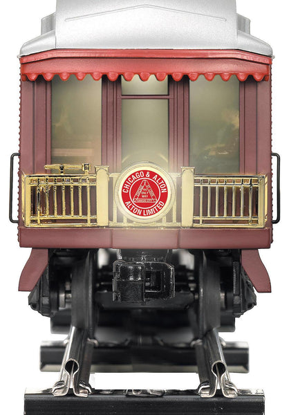 The Chicago & Alton Railroad was a pioneer in luxury passenger service. After the turn of the twentieth century, the railroads premier run between Chicago and St. Louis was named the Alton Limited, but was often referred to as the "red train" because of its trademark livery. In 1924, the C & A updated the Alton Limited: A fast, Pacific-type locomotive pulled a brand new set of Pullman heavyweight cars, all painted in matching shades of maroon and red. From its debut at Chicagos (then under-construction) Union Station, the "new" Alton Limited was given the title "Handsomest Train in the World." The American Flyer Alton Limited set features an all-new scale-sized Pacific type locomotive and matching all-new heavyweight passenger cars.. LOCOMOTIVE FEATURES:, TrainMaster Command Control equipped—able to run in Command Control Mode or in Conventional Transformer Control Mode with most American Flyer and Lionel transformers , RailSounds 5.0 sound system with custom recorded effects including: , Multi-part CrewTalk dialog and TowerCom announcements to create realistic operating scenarios, from pulling out of the yard to initiating an emergency stop , Realistic operator-controlled effects, including the water injector, activated by the CAB-1 Remote Controller , DynaChuff synchronized chuffing that shifts through 15 levels of intensity as the locomotive gains speed , Simulate the locomotive running light or battling against a heavy load by manually adjusting the DynaChuff intensity level with CAB-1 commands , MultiWhistle effect simulates blows at different steam pressures, long and short attacks, and even extra quilling with each press of the whistle button , Independently adjustable volume control—use your CAB-1 Remote Controller to lower the level of background effects such as chuffing, while keeping operator-controlled effects such as the whistle at full volume , Many operator-controlled effects, including CrewTalk dialog and TowerCom announcements, are accessible using only a conventional transformer , Powerful maintenance-free motor with momentum flywheel , Wireless tether connection between locomotive and tender, Directional lighting with operating headlight and back-up light on rear of tender , Illuminated classification lights on front of locomotive , Die-cast metal locomotive body, frame, pilot, and trucks , Traction tires , Operating smoke unit , Separately applied metal details , Accurate separately applied builders plates , Illuminated cab interior , Engineer and fireman figures , Die-cast metal tender body and trucks , , PASSENGER CARS FEATURE:, Die-cast metal trucks , Metal frame , Window silhouettes, Lighted interior lighting with ON/OFF switch , SET INCLUDES:, Pacific locomotive and tender, combination car, two coaches, observation car