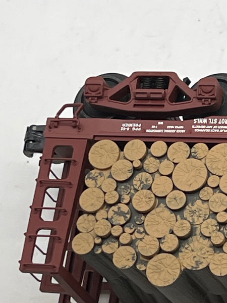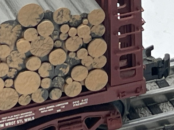 Pulpwood is not a specific type of wood, but actually tree limbs that are cut to a specified length, then turned into wood pulp and used in the paper industry. Early paper making had the trees near the paper plant. As timber resources were diminished, the need for transporting pulpwood began to rise. Railroads were seen as an efficient method of transporting pulpwood. Pulpwood in the Southeast and Northeast is generally cut into four-foot or less lengths and loaded onto "V-deck" bulkhead flat cars. The Atlas pulpwood flat is a reproduction of an early 1950s General Steel Castings "V-deck" design.