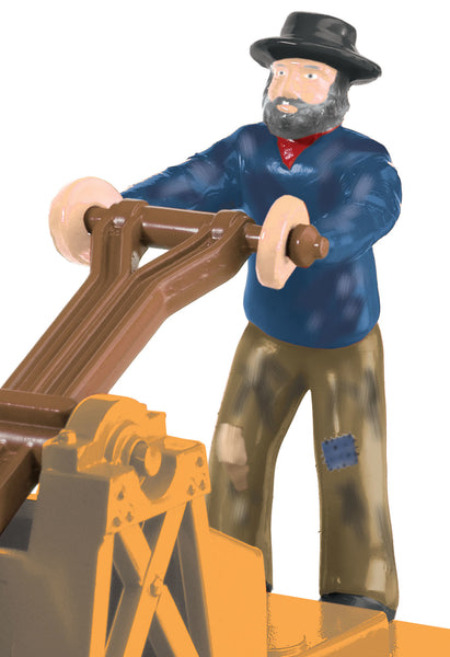 Two diligent workers grip the levers of this handcar and move it to a work site that’s further down the tracks.  Add this car to your layout for motion-packed fun!  . FEATURES:, Powerful maintenance-free motor , Traction tires