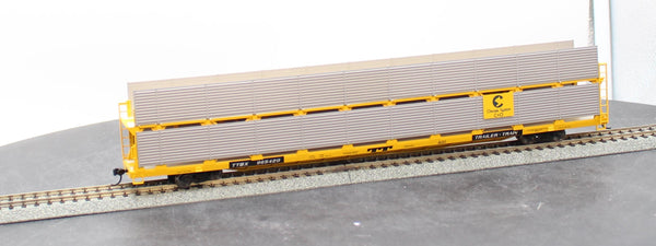 Walthers Mainline 910-8105 HO Scale 89 Flatcar w/Bi-Level Shielded Auto Rack - Ready to Run -- Chesapeake & Ohio Rack / Trailer-Train Flatcar TTBX #965420. Carefully detailed for HO Scale Model Trains. Made from high quality plastic and metal components.