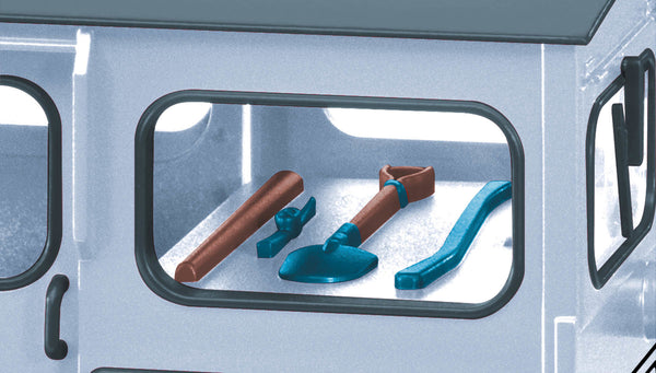 . FEATURES:, Transformer controlled forward, neutral and reverse operation , Directional lighting , Powerful maintenance-free motor , Traction tire , Die-cast metal frame , Separately applied metal handrails , Operating strobe light , Detailed cab interior , Interior illumination, Two crew figures